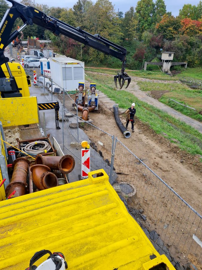 - Pompcapaciteit: De installatie is ontworpen om 1.080 m³ afvalwater per uur te transporteren, om een continue werking tijdens de bouwwerkzaamheden te garanderen.