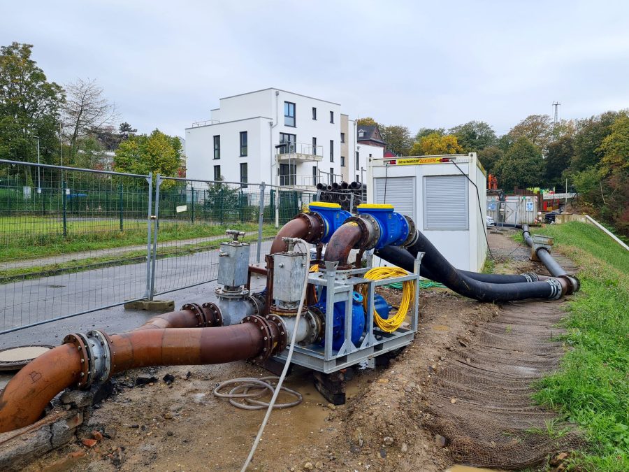In het centrum van Solingen voert August Dohrmann GmbH een uitgebreide modernisering van het rioolstelsel uit, inclusief de installatie van een nieuwe schacht. Hiervoor is een krachtige pompinstallatie geïnstalleerd die 1.080 m³ afvalwater per uur kan verpompen.